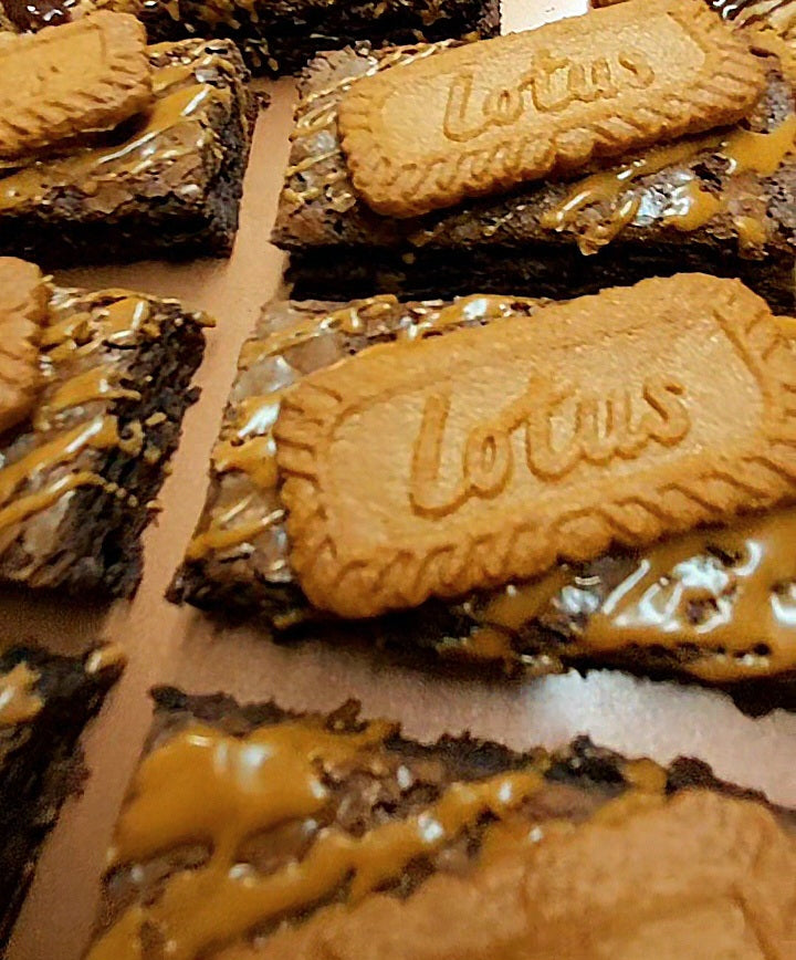 Indulge in a fudgy, delicious, melt in your mouth Brownie drizzled with Biscoff cookie butter and topped with a Biscoff cookie. Great with coffee, milk, and ice cream. So good and guaranteed to brighten your day! Nice size and the right amount of thickness.